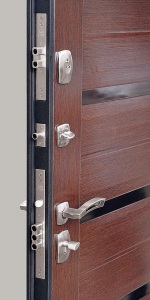 | Материал двери наружный/внутренний | металл чёрный крокодил/панель МДФ наборная со вставками стела, цвет венге |