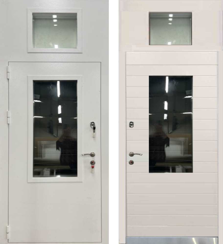 Входная металлическая дверь с верхней остеклённой фрамугой для установки в частный дом, лицевая сторона окрашена износостойкой, порошковой краской Муар, внутренняя отделана МДФ.