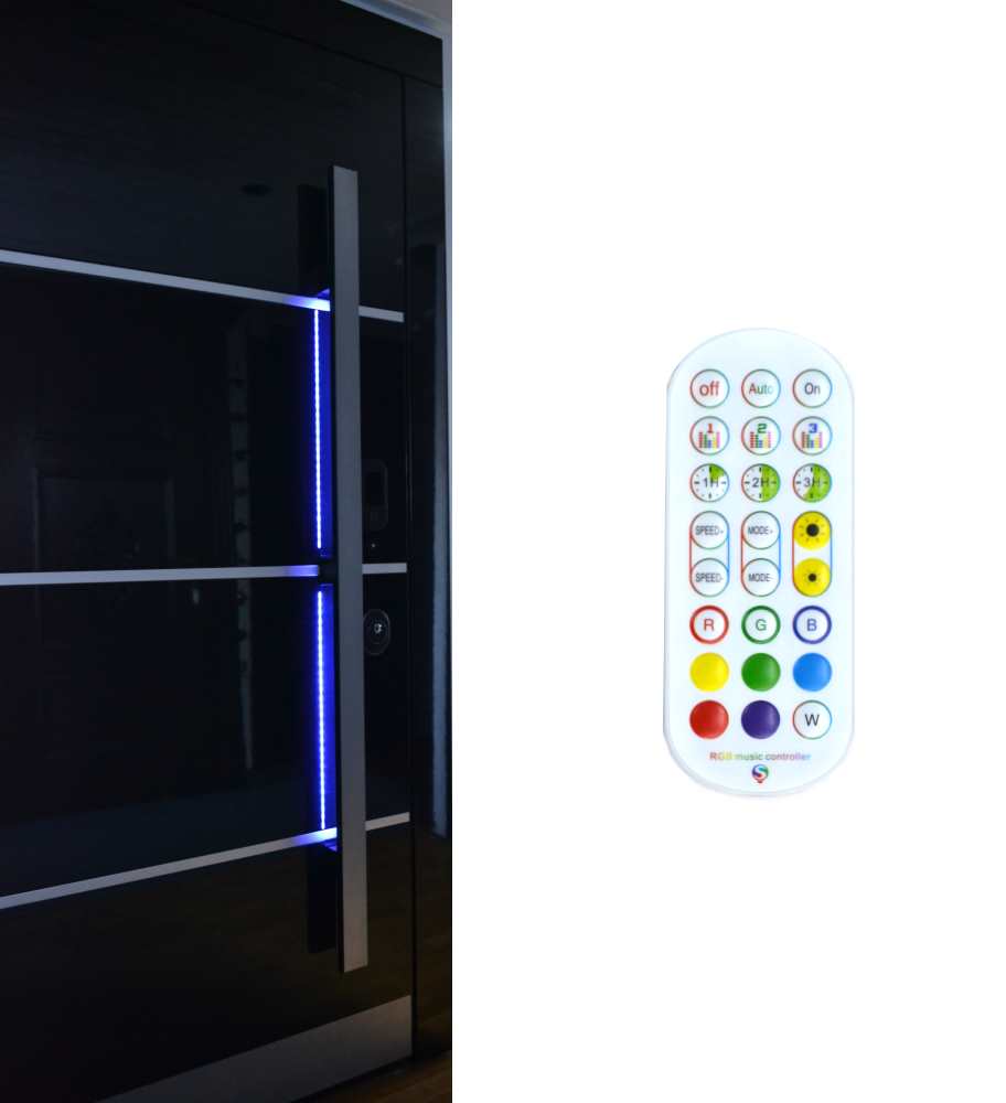 Ручка металлическая Скоба ПР 150 со светодиодной подсветкой с внутренней стороны, включается автоматически при приближении к двери по датчику движения, в комплекте пульт дистанционного управления.